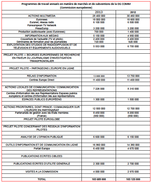 Hausse relativement réduite du budget de la DG COMM en 2013